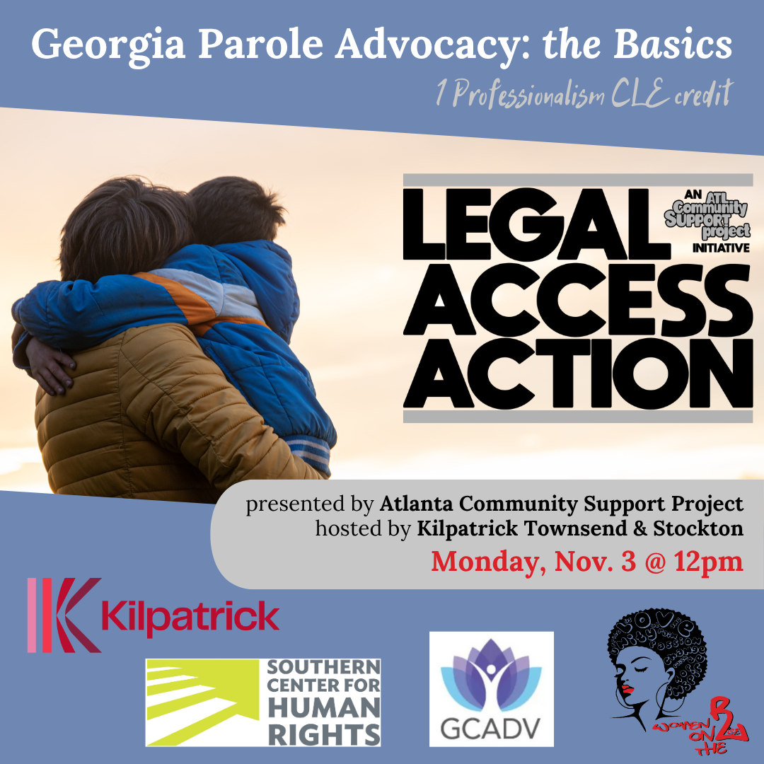 For the training, Luci Harrell and Page Dukes of ACSP will be joined by Robyn Hasan-Simpson, Executive Director at Women on the Rise, Ga; Mark Loudon-Brown, Senior Attorney at Southern Center for Human Rights; and Ellie Williams, Legal Director of the Justice for Incarcerated Survivors program at the Georgia Coalition Against Domestic Violence.